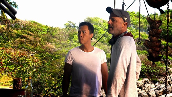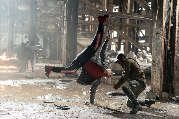 比如开场甄子丹的单打大戏,功夫元素+蹦极,落入会场中面对群敌,还有功夫在桌子上来一招360度托马斯全旋开枪,为的就是耍帅。能正面命中敌人的,一定要来一招“苏秦背剑”才叫杀敌,能瞬间秒杀的,必须要“张飞骈马”命中才够爽快;能破门而入的,必须要开车撞墙进去;能跳伞的,必须要把降落伞扔出去然后在跳飞机去追,跟人家谈判,还得玩几个手榴弹,否则都不好意思在圈子里混。