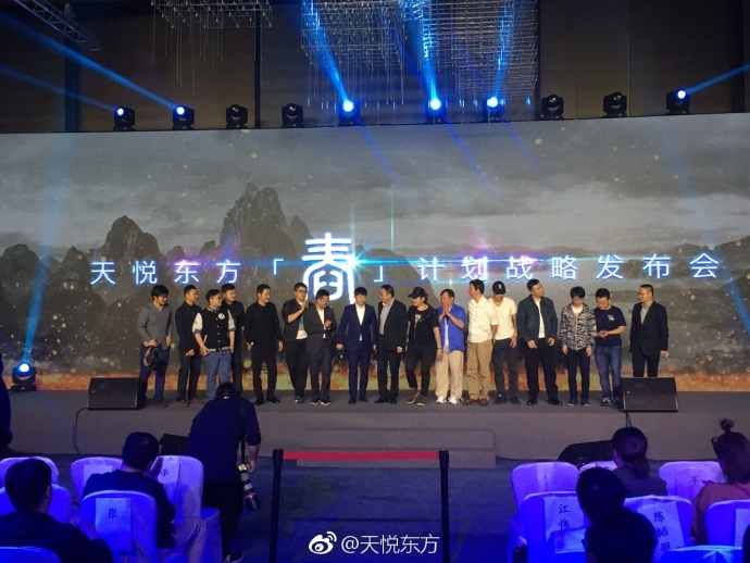 4月15日,2017天悦东方——“舂”计划战略发布会在北京举行,现场发布了2017及2018年重磅影视剧作品片单,并就公司的影视产业链布局及互娱布局进行了详细阐释,集中展现了天悦东方的项目进展与战略思考。天悦东方文化传媒有限公司总裁兼CEO林正豪,导演胡储玺、武术指导马玉成、导演陈伟祥、著名网络小说家净无痕、耳根等参加了发布会。