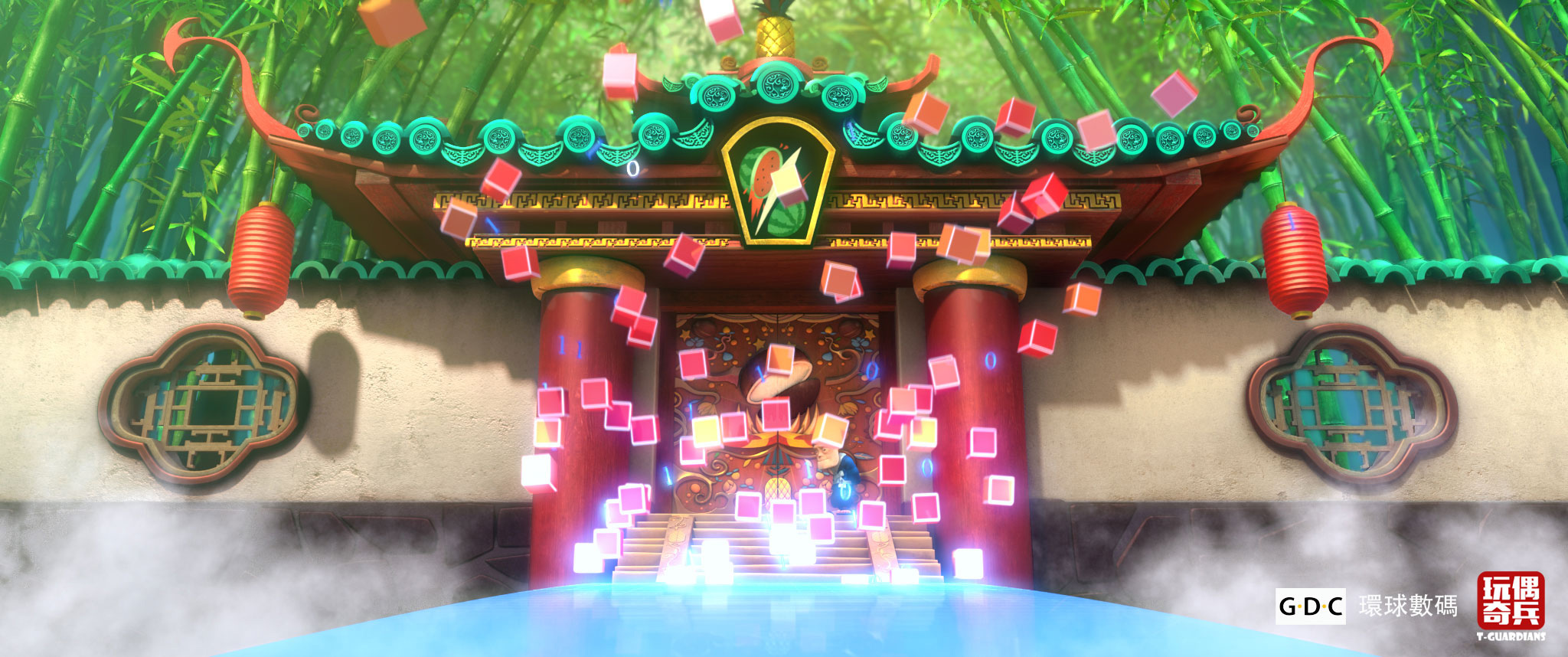 电影最有趣的地方,就是迷你虎为了拯救小主人的“童心”,穿越到了数码世界,这是一处打破“次元壁”的设定,很有新意。当他们全部来到数码世界之后,我们常见的pad或者手机界面,变成了奇幻的3D世界,天空漂浮的一个个APP房子,四处飞舞的邮件,不断吞噬垃圾的“回收站”,极具新鲜感和吸引力。电影的故事,其实就是“寻宝”任务,寻找的宝物就是“童心”,前往任务终点,中间要过关斩将,于是我们耳熟能详的游戏——《开心消消乐》和《水果忍者》就粉墨登场了,连水果忍者那位老爷子都成为该片中一个重要的角色,在虚拟的3D世界里,我们熟悉的2D游戏都成了立体呈现,最喜欢的就是水果忍者那段,梅花桩上的切水果,分数够了之后才能前进,这样的设定,大概只有玩过游戏的朋友才能体会。