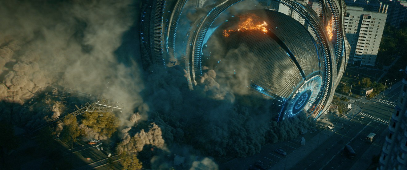 当然了,这部特殊的《莫斯科陷落》还是有着一贯的俄罗斯做派,比如开场苏35遭遇外星人飞船那一幕,二话不说一颗导弹上去就给揍下来了,不愧是战斗民族,外星飞船坠落的场面非常好看。