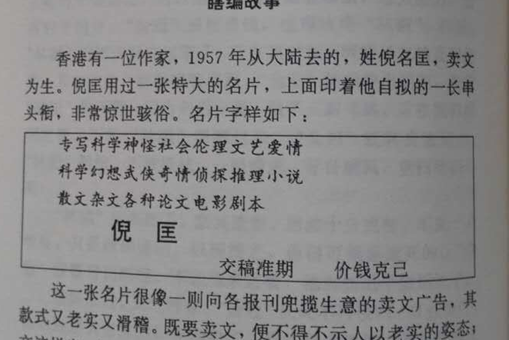 让我们看一下当年倪匡的名片,是这样子: