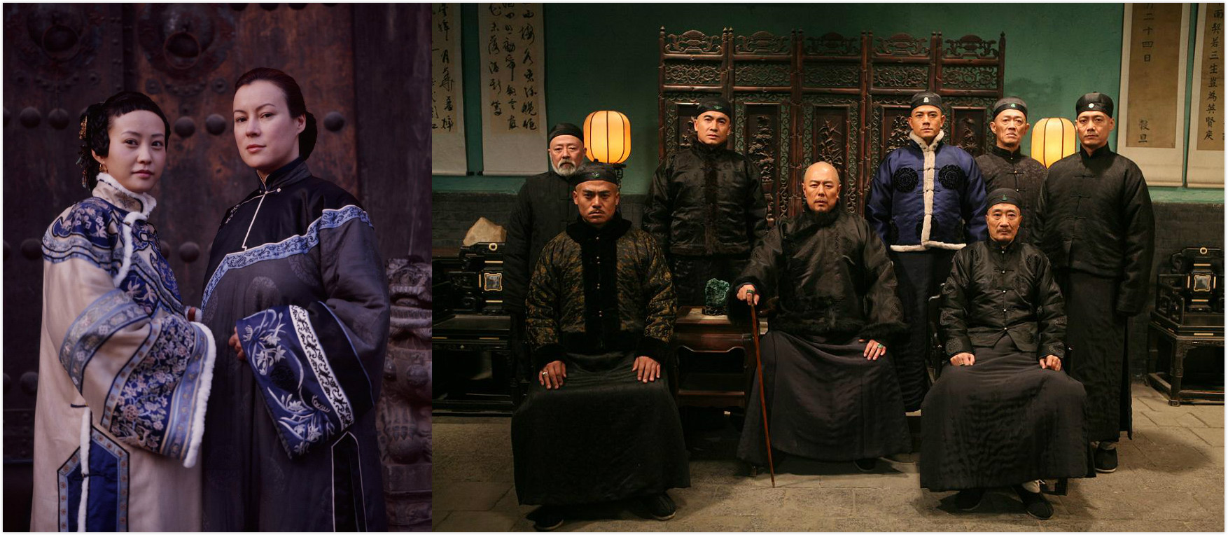 关于反映这个时期的作品,最简单的例子,我们有《白银帝国》作为参考,电影的剧照非常考究,至少从视觉上,能一眼就能看出,电影的时代背景是清朝。男性和女性的服装造型如下。