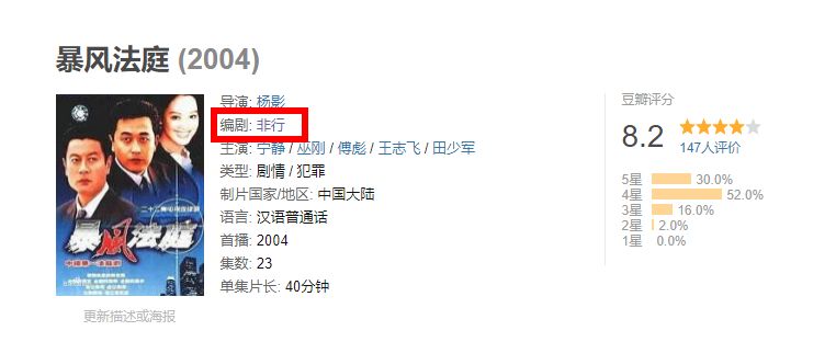 首个剧本不顺让非行倍受打击,第二个剧本《守望者:罪恶迷途》也因此搁浅下来,转而投身电视剧行业,当时电视剧在审查方面相对要宽松一些。处女作《暴风法庭》得到了认可,后来《真相背后》《亡命天涯》等也让他在编剧领域打出了一片天地。