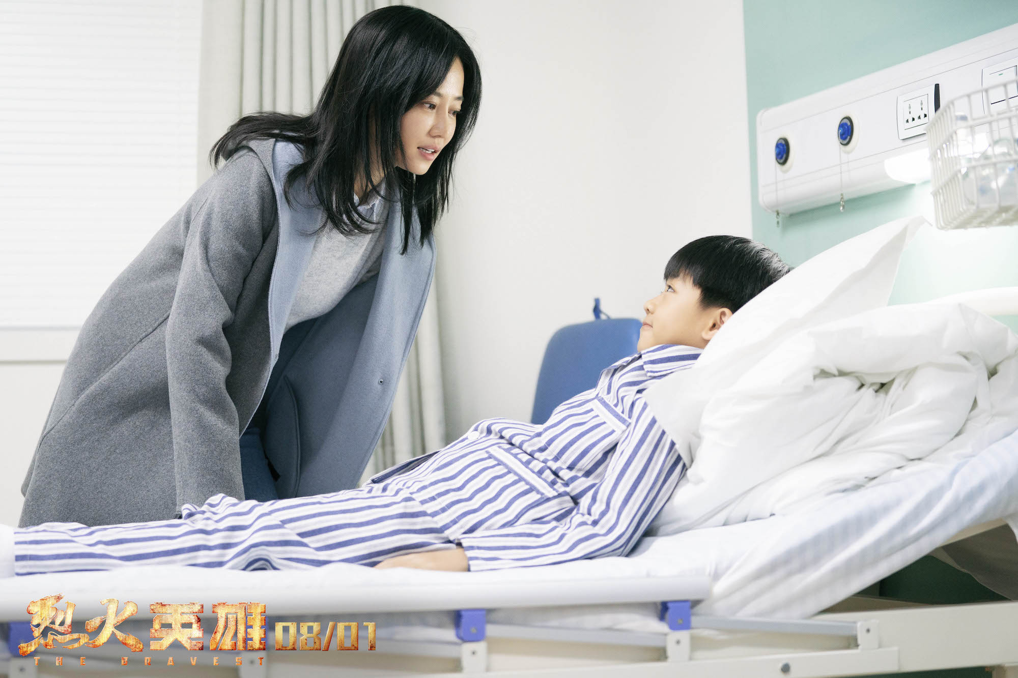 谭卓饰演的李芳,功能性也大致相同,从一出场,她就代表了主角江立伟的家庭羁绊,自己的柔性与丈夫的刚毅形成鲜明的对比,来自妻子的埋怨和孩子的误解,成为主角的压力。而面对丈夫奔赴火场的背影,那期盼的眼神中,更是不舍的担忧。随后的火场任务,又成为了角色牵制力的核心。她对丈夫的挂念,江立伟对妻子和家庭的不舍,这样的呼应,让角色本身顿时鲜活立体起来。
