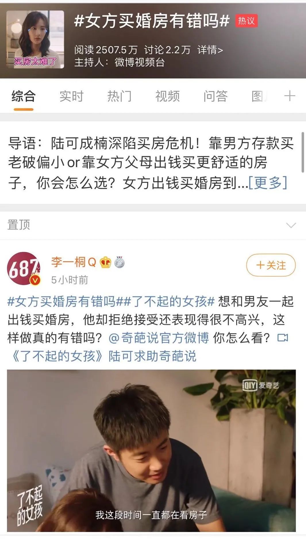 最近李一桐承包热搜,因在最新的故事中,努力拼搏的打工人陆可却遭遇个人情感问题,先是与步入婚期的男友成楠商讨买房问题,本来打算一起买房却被男友拒绝,陆可的家人希望出一半首付支援新婚小夫妻买套好点的房子,成楠却希望完全靠自己的力量给陆可一个家,完全拒绝接受女方家庭的帮助……•一时间搞到争议无数,引发无数网友讨论。