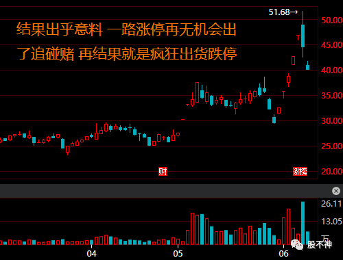 所以说这种主力疯狂操纵的妖股,很难把握,而且盘中多有大幅的异常波动,不卖可能是主力疯狂出货,白玩还大亏损。卖了可能继续上涨,即便把握到也很难持有到最高位出货,当然一直涨停到高位没有波动的万幸。如果追涨追高操作失败被出货,损失巨大一般投资者都难以承受,所以说非主力很难搞定。