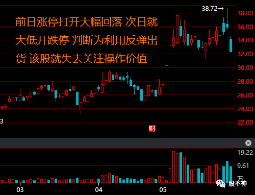 结果次日大幅低开跌停,股价运行到这里,按照正常的逻辑分析判断,前一日涨停打开大幅回落,次日就大低开跌停,解释就是主力利用反弹出货,跌停也确认了这一判断。这个逻辑该股就失去再关注的价值,基本判断后市不会再大幅上涨,当然我们不是主力涨不涨都有可能,但作为非主力的我们到这个位置只能进行这种判断,一般不会再行操作。