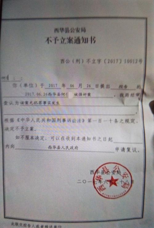 何女士称,她于6月26日报警,并将佳佳宿舍内带有精斑的被褥交给警方。6月28日,西华县公安局出具不予立案通知书,称6月26日,何佳佳提出控告的被强奸案,经审查认为无犯罪事实发生,决定不予立案。