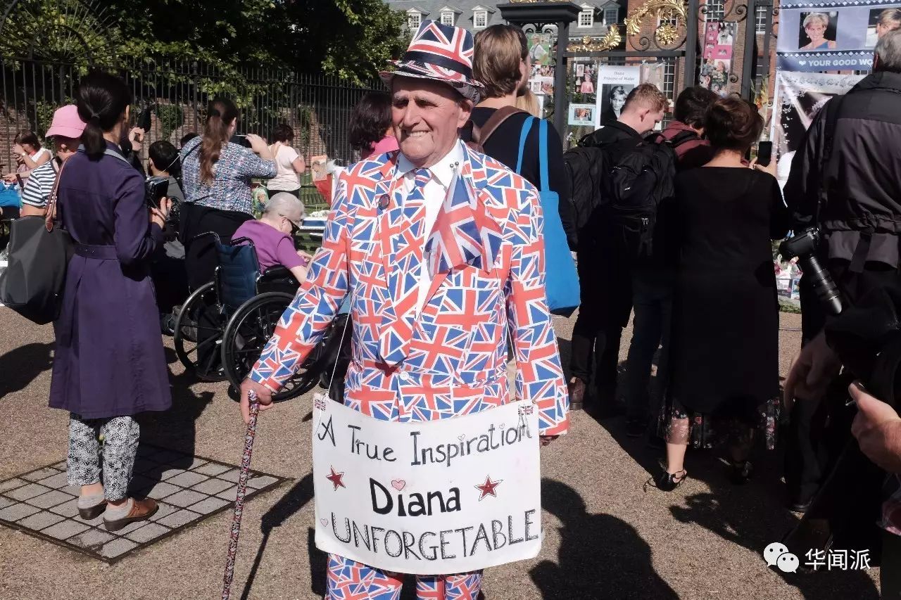 “戴安娜头号粉丝”(英国广播电台BBC封的头衔)John Loughrey也毫无意外地出现在了现场。他告诉华闻君,“我昨天就来了。今天也会在这里呆一整天。我1991年见过戴安娜王妃一次,就再也忘不了她。”