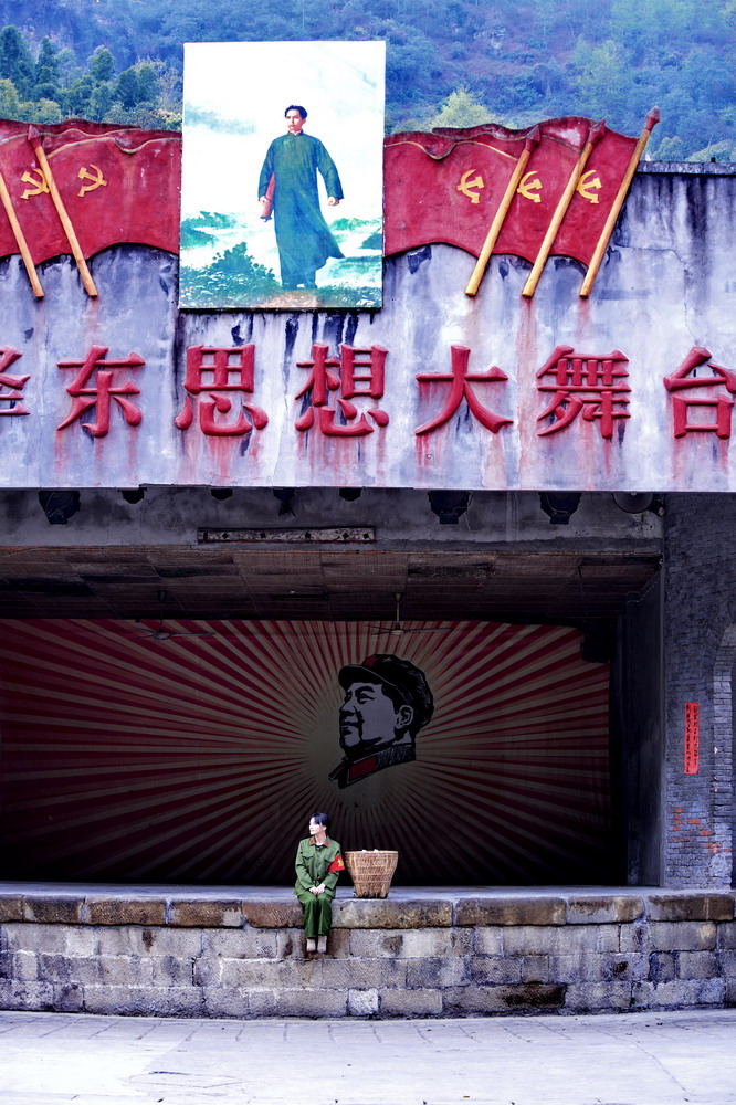 身后,同行的朋友大雨正忙着换镜头,给穿上租来的红卫兵服装的伙伴拍照呢。