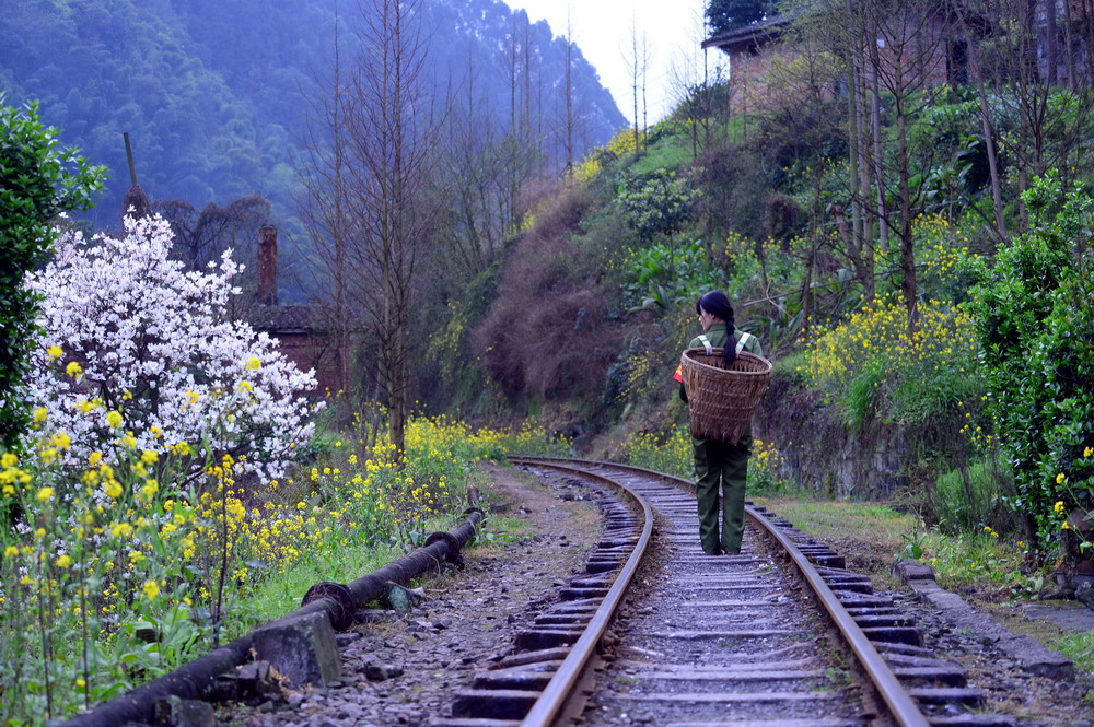 每经过村庄道口,小火车都要“呜呜呜”的拉响长笛,在空旷的山野里回响。但是汽笛再嘹亮唬人,小火车还是晃悠悠不紧不慢的走着,就像在地里耕作的老牛,有心而无力,让人心急。还好,车窗外晃过的早春山野,及时拯救了我们的心情:漫山遍野的澄黄色的油菜花,间杂着粉红的桃花、洁白的李花,还有五颜六色的野花,开放得肆无忌惮,不知今夕何夕。