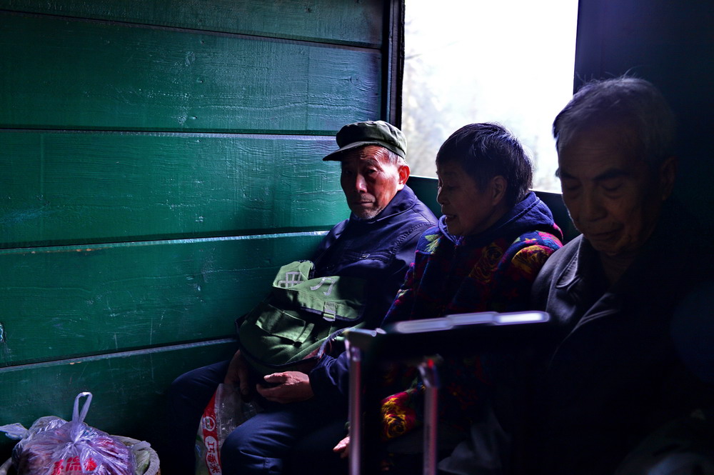 狭小的绿皮车厢里,和我们挤在一起的,是背着背篓沉默的村民、拿着自拍杆吵吵嚷嚷的游客。脚边堆放着装满蔬菜红苕和家禽的箩筐与麻袋,车厢里弥漫着浓郁的“乡土”气息,稍有不慎,还会踩出几声小猪的尖叫。