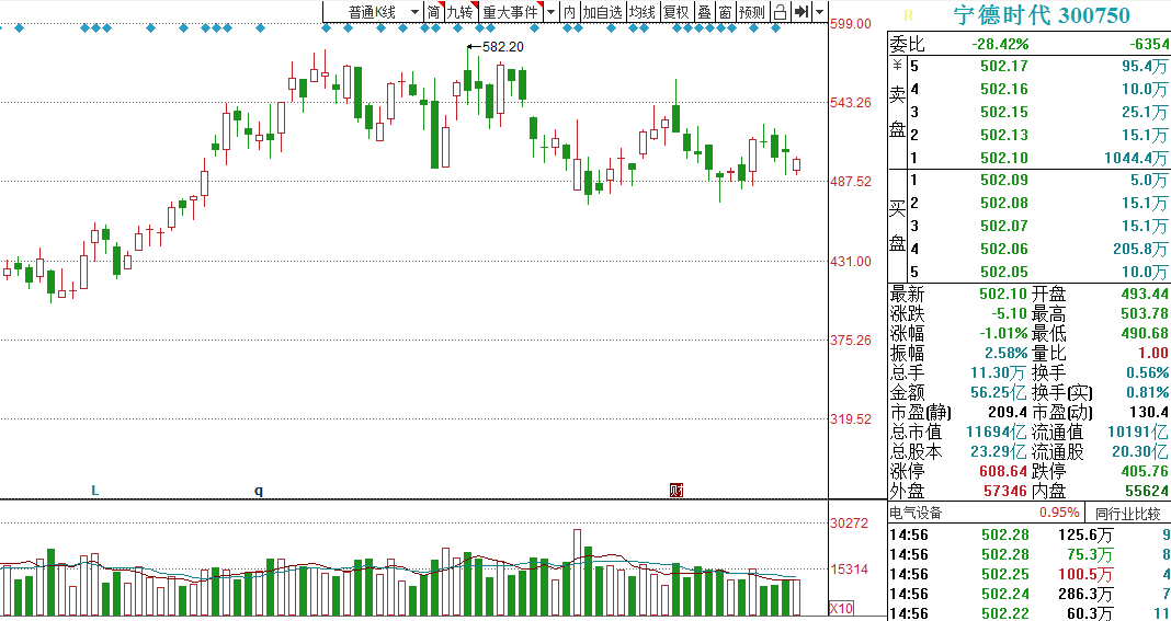 虽然大部分股票下跌,比如资源跟新能源,这两个是市场一直以来的很重要的主线,在今天也是动荡分化的,尤其是新能源以宁德时代为例,昨天算是力挽狂澜了,今天也出现了一定的异动,但是最终没有红盘还是跌了一个点左右。