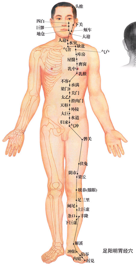 1. 面色发黄,肌肉松驰,表明脾胃的气血不足,或消化功能不良,此时可以拔任脉的中脘穴、关元穴和足阳明胃经的足三里穴。