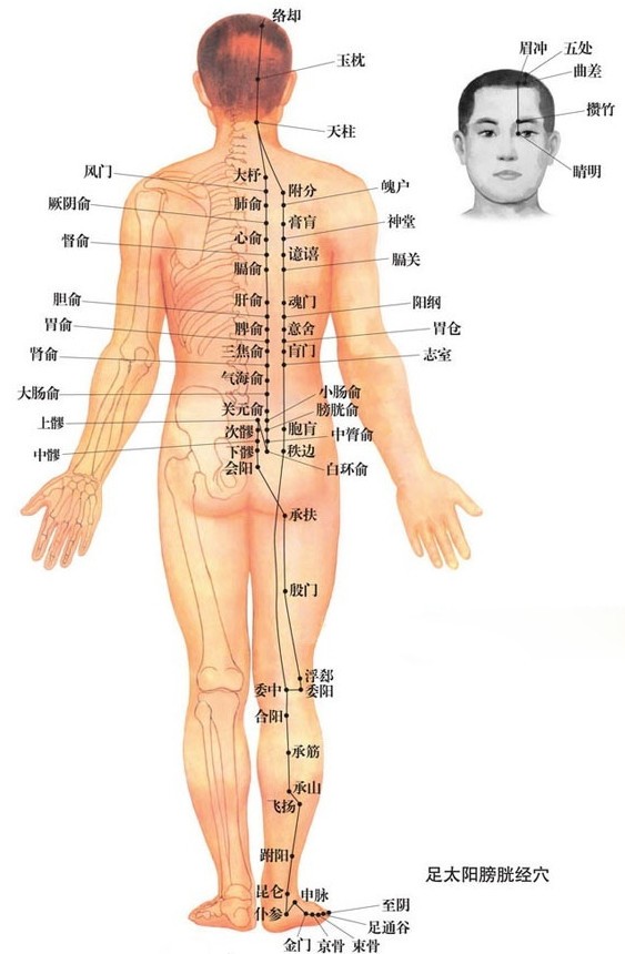 3. 面部黄褐斑,是五脏气血运行不调,此时可以拔膀胱经的肺俞、心俞、肝俞、脾俞、肾俞,以及八髎穴(上髎、次髎、中髎、下髎,左右各四个,共八个穴位)。