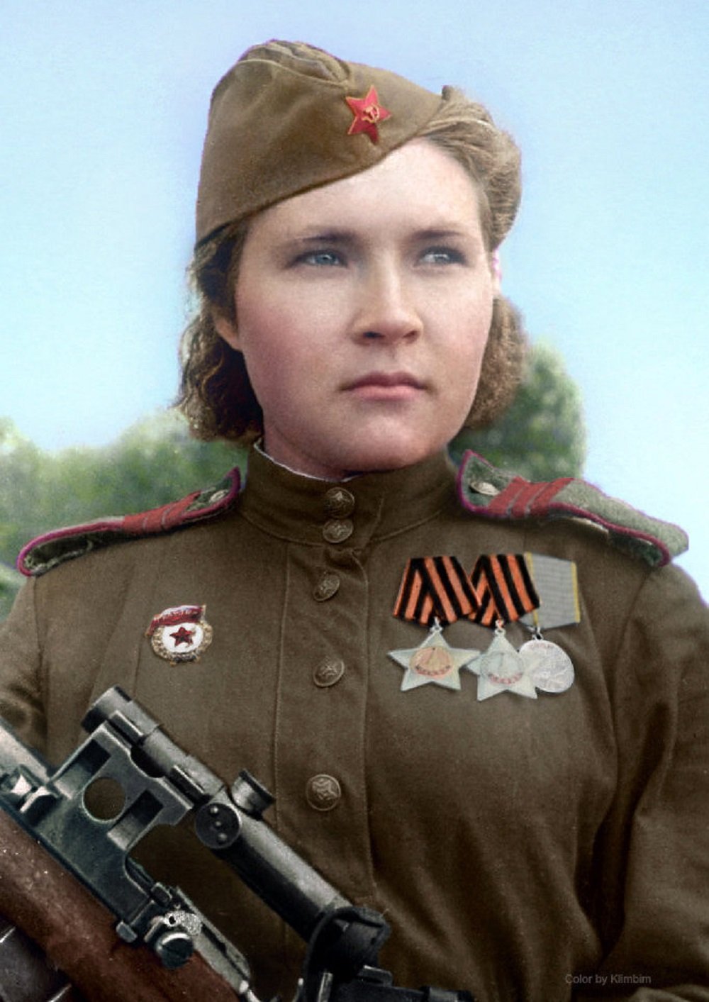 卫国战争期间,苏联大约有100万的女兵走上了战场,其中许多女兵直接参与作战。