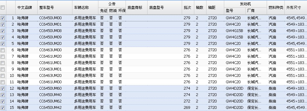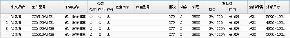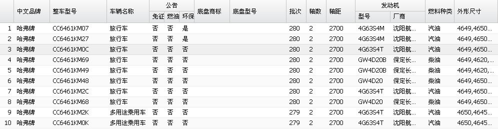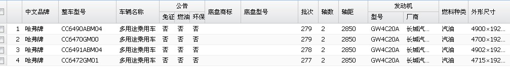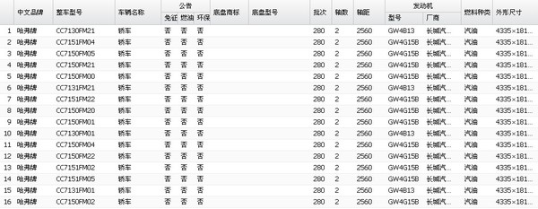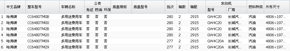 哈弗系列车型的轴距由长到短排序依次为:2915为H8,2850为H7,2800是H9,2720为H6 C,2700为H5,2680为H6,2560的为H2,2460为H1。在“中国汽车网”搜索环保目录时,如果只搜某品牌的某个车型,那么除了品牌再加上该车型的轴距来搜索是最方便省力的。