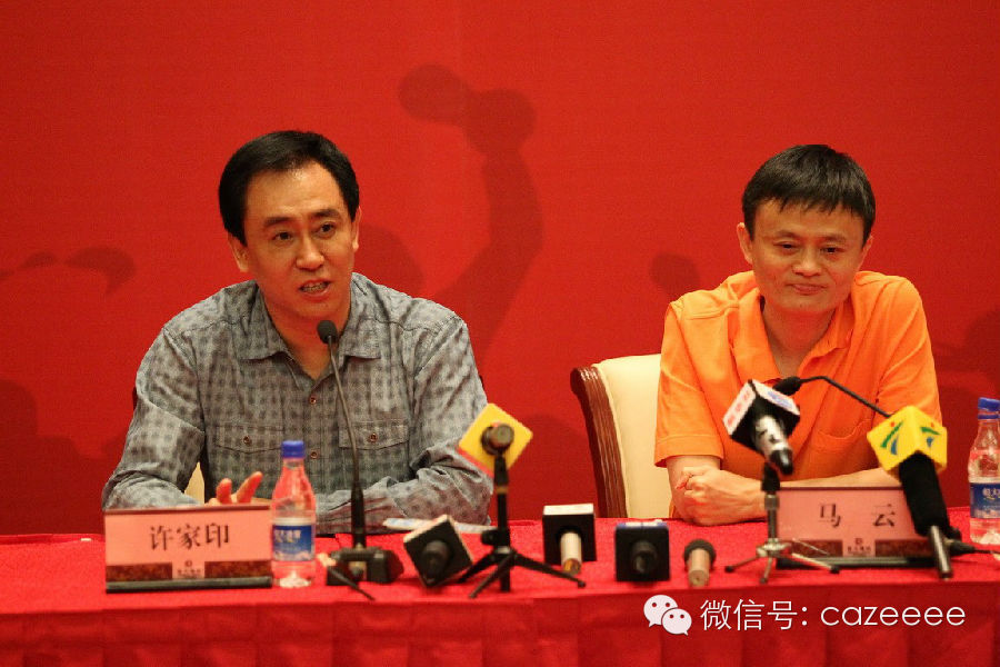 许家印在现场透露,一年前自己就开始邀请马云“玩”足球,但马云一直在思考。在前几日的香港饭局中,许家印笑称自己将马云“灌醉”。用真诚打动了马云。而双方只用了15分钟便决定共同合作,并定于今天上午11点11分签约。