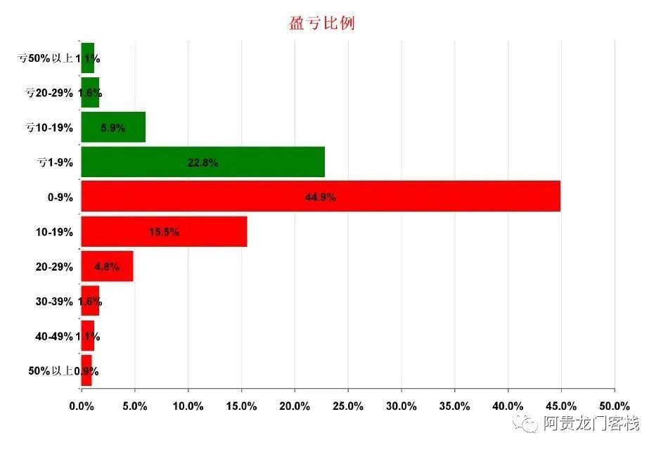2、盈亏10-29%的15.5%,亏损10-19%的5.9%。