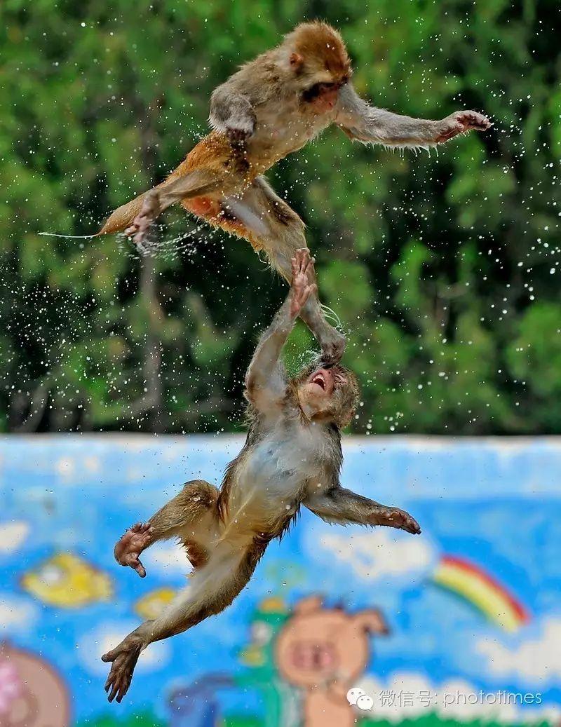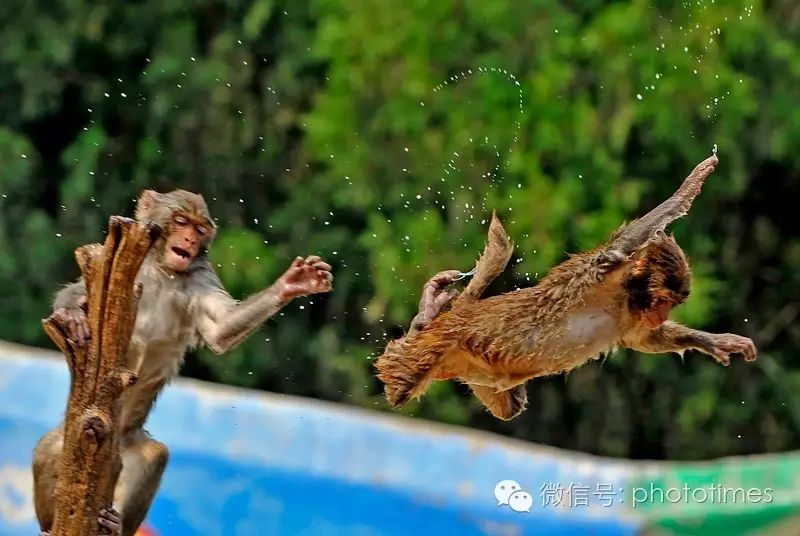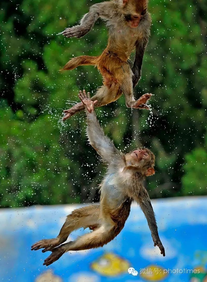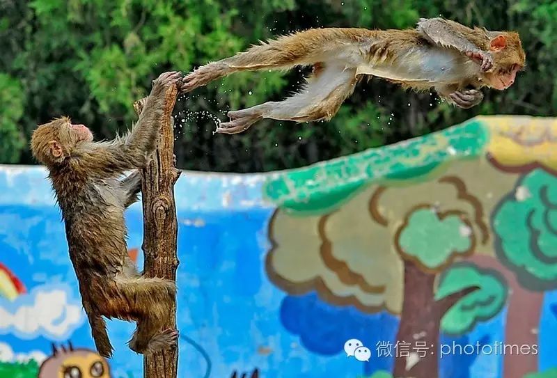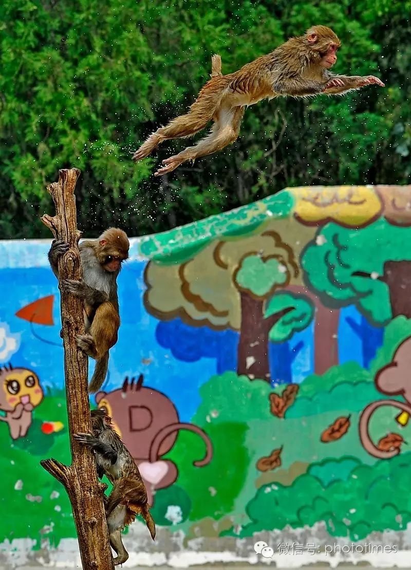 ▲猴山跳水队躁起来了