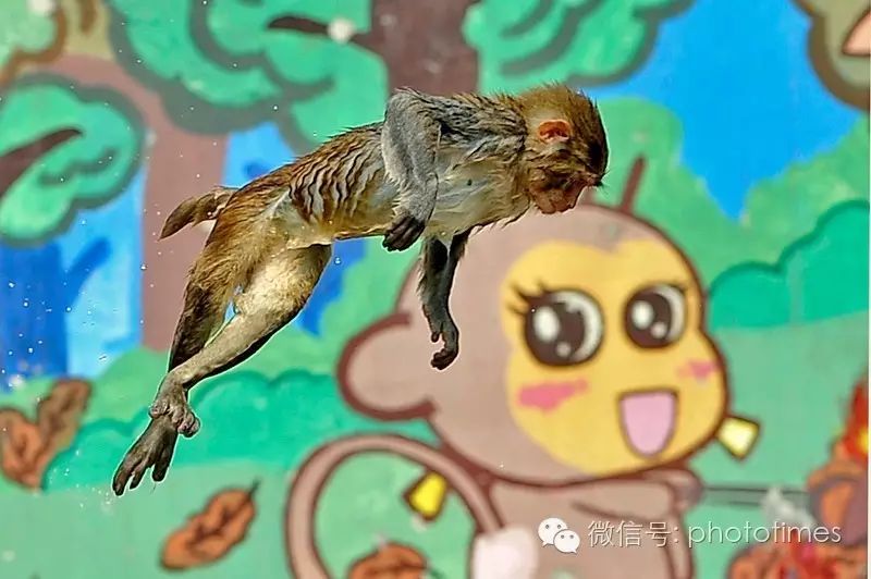 ▲别看我胖,跳水从不含糊,一个漂亮的腾空,猴妹开始尖叫。