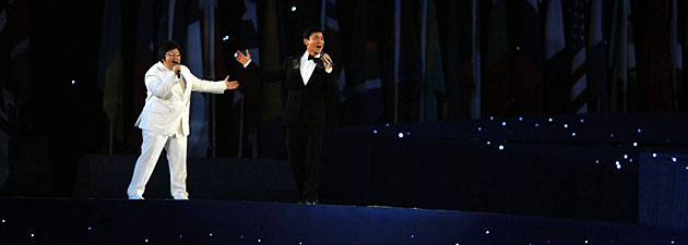 刘德华 、 李琛、杨光在开幕式前一起演唱歌曲《Everyone
