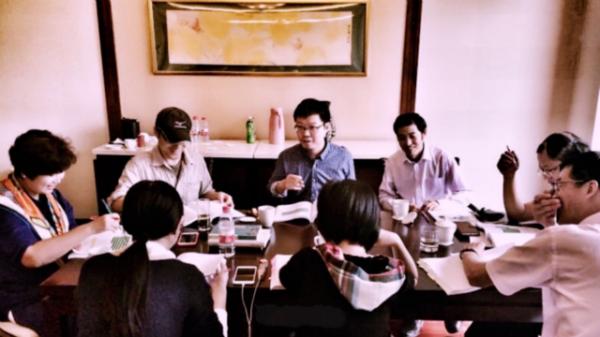 作者与主持人及点评嘉宾在录制现场。图片由作者提供