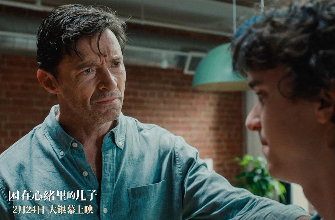 “狼叔”休·杰克曼这次一身得体西装,变身成了纽约上东区的精英人士彼得,老戏骨安东尼·霍普金斯作为上一部电影的主演,这次出演了狼叔的父亲,两人一场对手戏是全片中的名场面,漫不经心的寥寥几句让观众在短短几分钟之内看到两人父子关系的真实面貌。戏份不多,信息量巨大,父亲的成功光环与言语间的冷漠形成了鲜明的对比,这时观众会发现彼得才是那个困在心绪里的儿子,活在父亲的阴影之下,永远无法对父亲曾经的所作所为释怀。