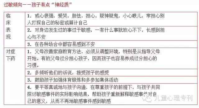 非比:其实对于解决办法和家长要怎么做,虽不尽然,但是文中症状的部分是可以参考的。关于解决办法可以做为预防只用。如果孩子一旦发展出了这些表现,改变起来其实是非常困难和漫长的过程,并不是靠家长自己“说说”就可以解决的,所以及早向专业人员求助,尽早开始解决,可以避免更严重的情况发生,也争取在可改变、较易改变的年龄阶段去调整,减少对未来的不良影响。