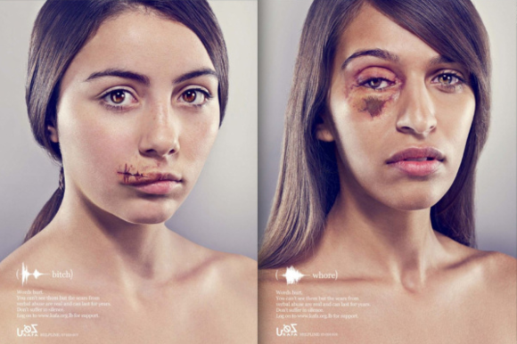 不是所有的暴力都是肉体上的,疤痕的形状就像暴力话语的声波一样,非常震撼,令人印象深刻。