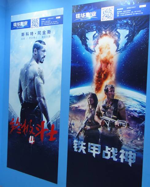 本次,由于各大重量级影业的缺阵,佳华影业成为重量新片数量最多的展柜,而且展台做得最有特色。各种外国批片、新片一应俱全。