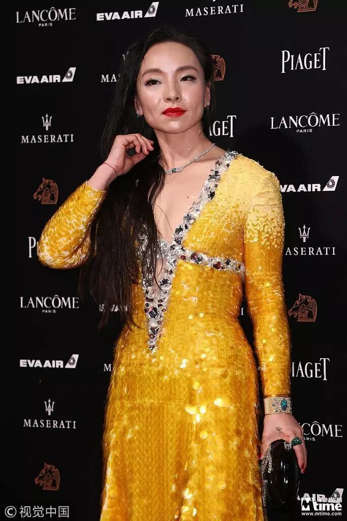 丁宁入围最佳女配 穿吊带亮片裙性感裸背