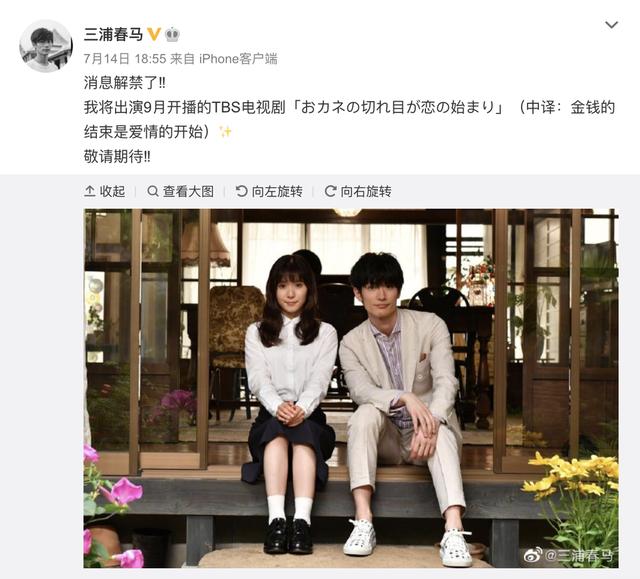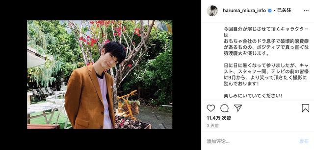 他在INS上的最后一条社交动态停留在3天前,介绍自己在新剧《金钱的结束是爱情的开始》中的角色,还喊话让观众们期待该剧9月开播。
