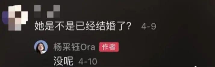 后来有网友在评论区问杨采钰是不是结婚了,杨采钰亲自回复称没有,否认两人的结婚消息。