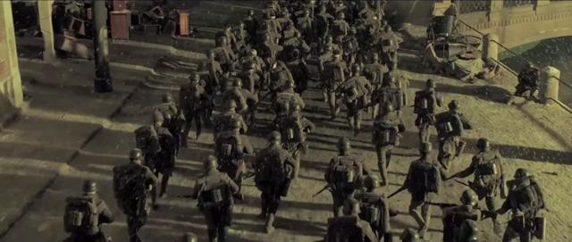 毕竟敌强我弱,双方武器与实力悬殊很大,八百壮士就是背靠租界,日军才不敢投鼠忌器,不能公然出重炮去拿下四行仓库,所以主角们后面必须撤。结尾的冲桥,先是一排排有序撤离,最后乌泱泱全部撤离,明显是戛然而止反高潮方式去煽情。