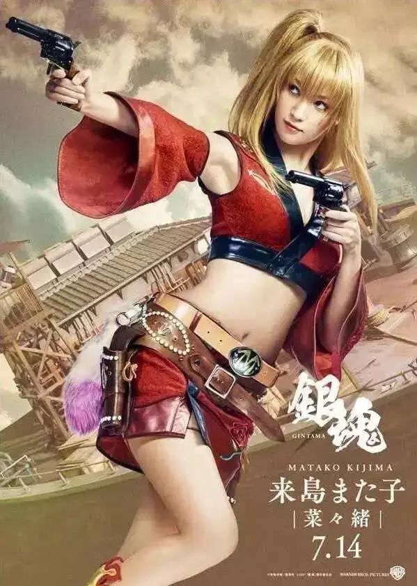 小栗旬主演的漫改电影《银魂》,菜菜绪曾饰演来岛又子,她性感曼妙的身材展露无疑。