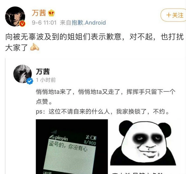 虽然万茜事后道歉,大骂“盗号的,你没有心”,但怎么看怎么像是炒作!