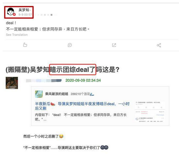 最近,《乘风破浪的姐姐》总导演吴梦知又深夜发文后秒删,文字让人猜测纷纷。吴梦知的发文称:“不一定能相亲相爱,但求同存异,来日方长吧”,不少网友认为这句话在暗示成团的七位姐姐的关系,一句“不一定相亲相爱”似乎证实了不和传闻。