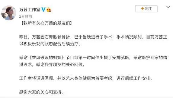 虽然有人质疑万茜是假车祸,剧本设计,真相如何不得知,但这位当红姐姐还是继续参加了剩余《姐姐》演出,而且人气大涨,最终获得第二的好成绩。