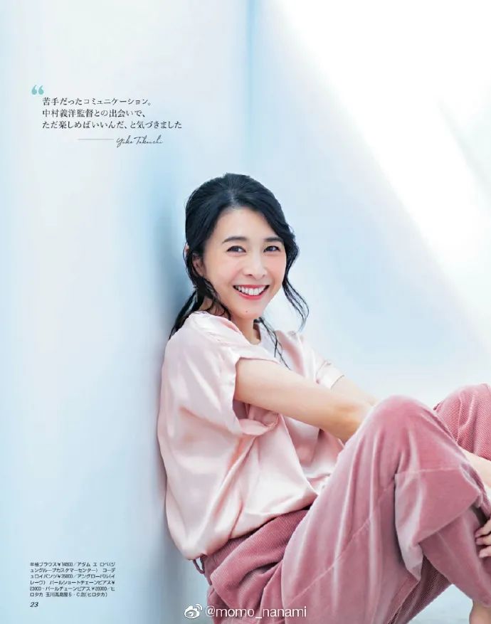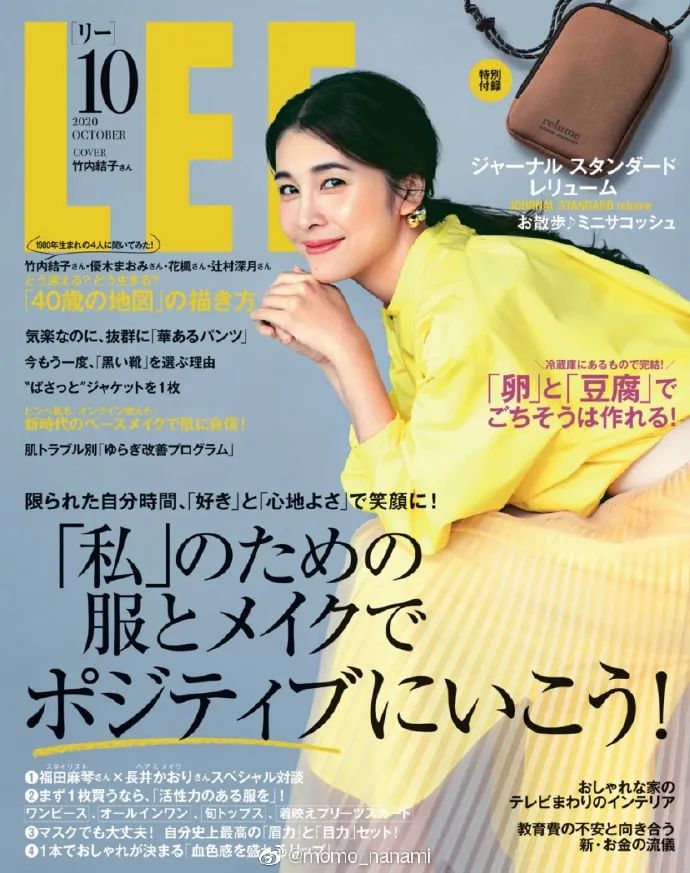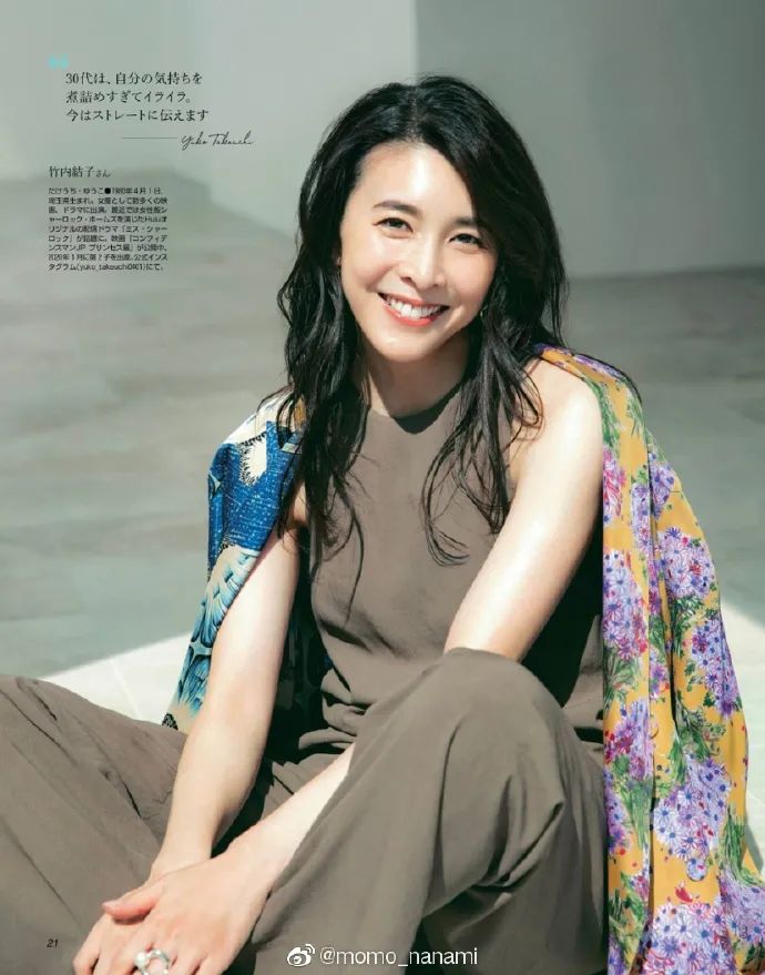 竹内结子日前拍摄杂志封面,身着柠檬黄上衣的她青春活力。她已经四十岁了,但容颜保养的不错。