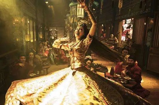 张天爱在《妖猫传》中饰演胡姬玉莲,翩翩起舞,散发着异域风情的韵味。