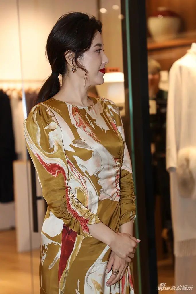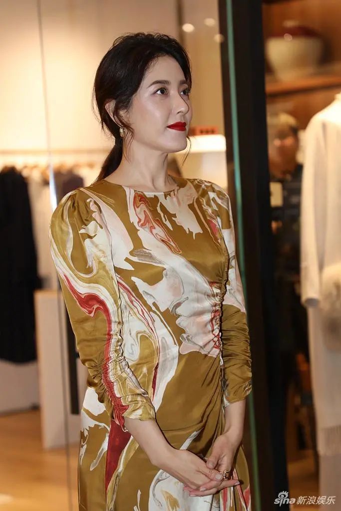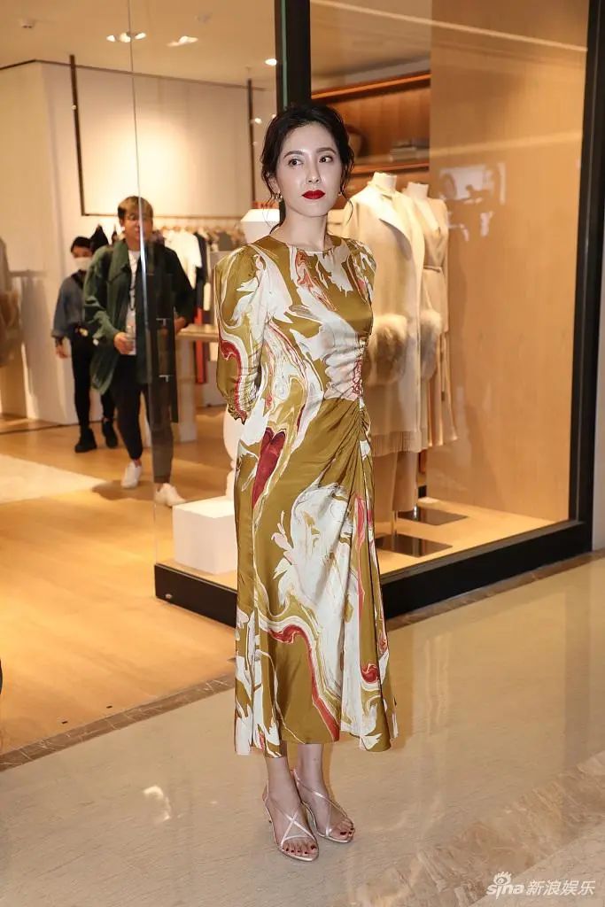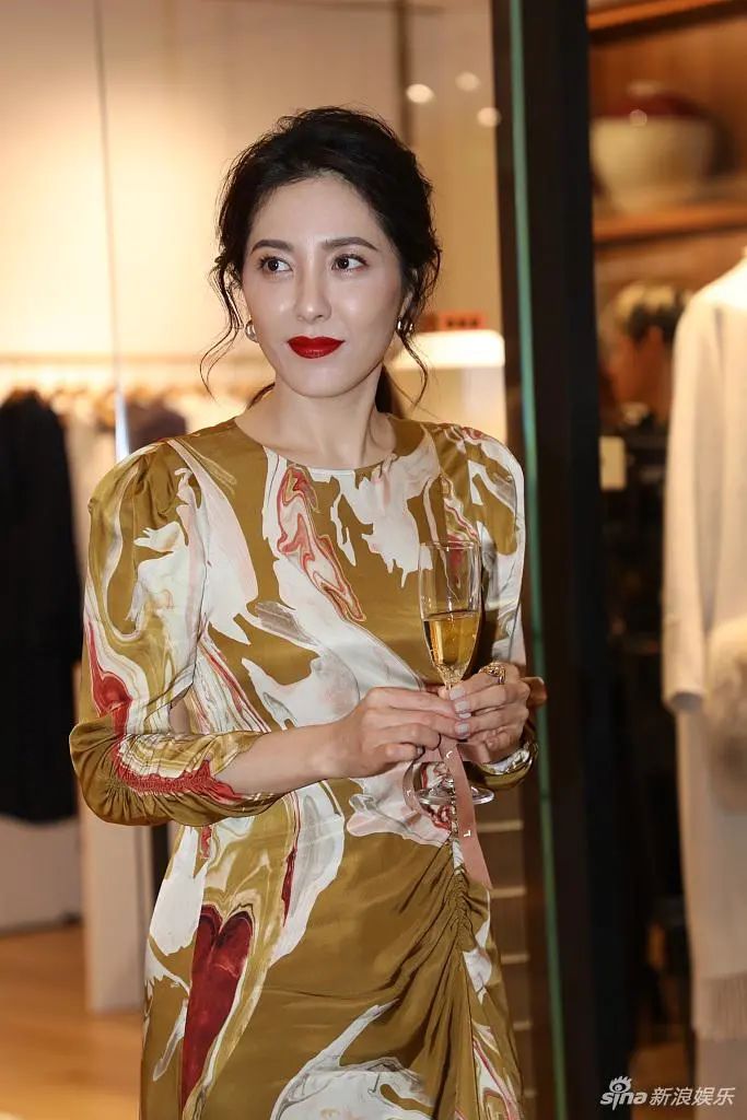 2020年9月19日,上海,44岁的曾黎出席某剪彩活动。她身穿油画印花长裙优雅范满满,涂红唇举香槟魅力十足。