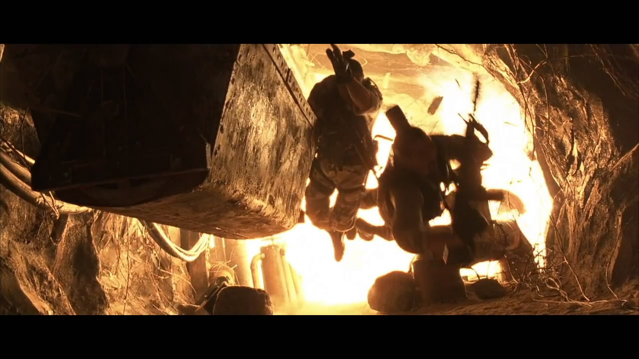 编剧对恶魔岛地形了解很深,所以打斗巧妙结合了环境。凯奇、康纳利相继躲在吊着的矿车里面,同敌人展开火爆枪战,就让观众看着就目瞪口呆。康纳利在室内躲避手雷,直接扑进浴缸内也很睿智,如此桥段全片比比皆是。