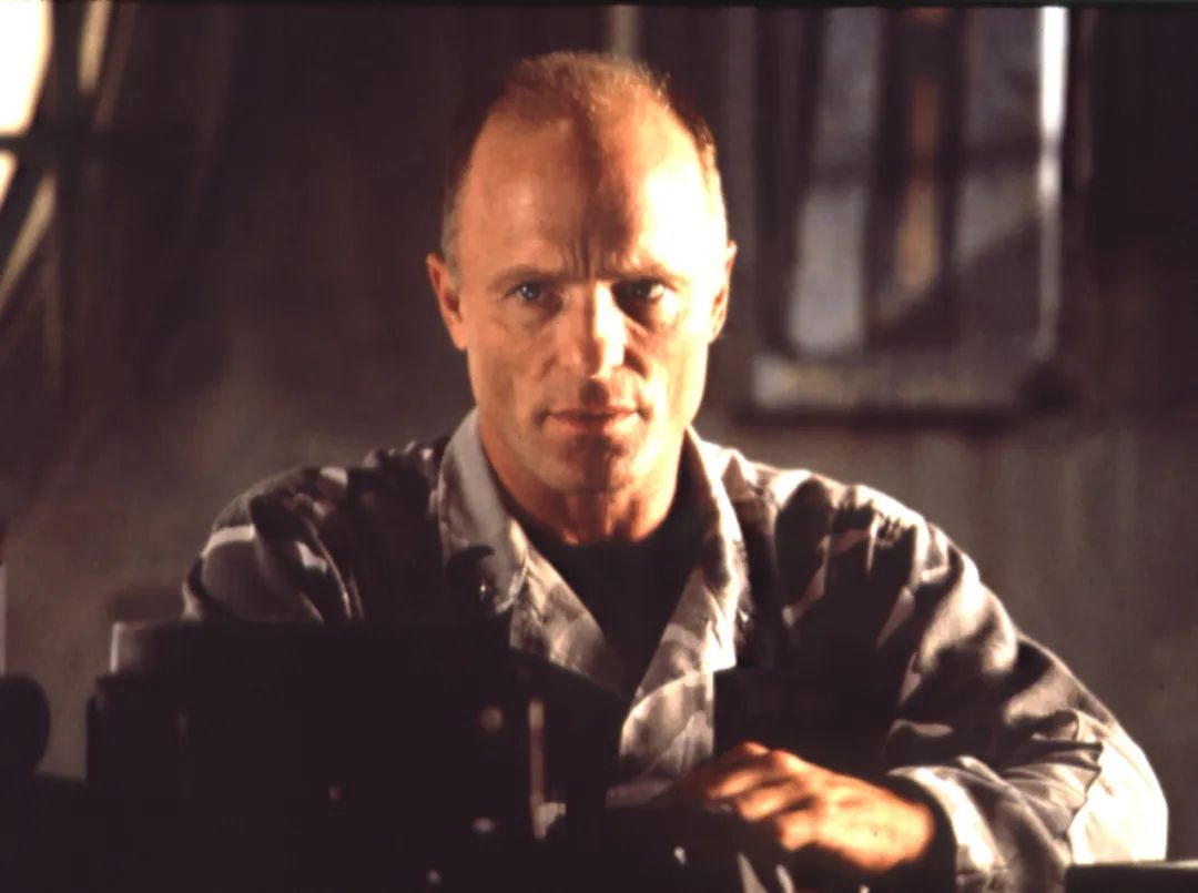 英国老牌007肖恩·康纳利,本片塑造梅森上尉,则冷静狡猾,强悍干练,绝对是一大亮点。他出狱不久就逃脱FBI的监控,高空吊着长官,还驾车狂毁一切,偷偷跑去见从未谋面女儿,后面在恶魔岛多次化险为夷,却并不正直。