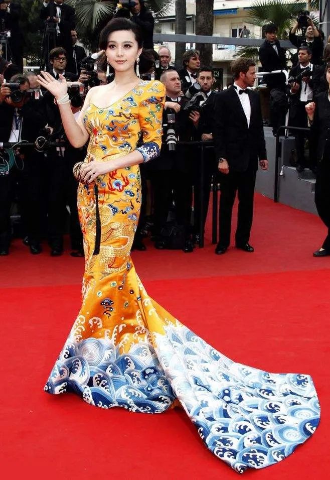 2010年第63届戛纳电影节开幕红毯上号称的龙袍改良版旗袍让范冰冰一战成名。这款龙袍,因采用了中国传统的帝王之色黄色和帝王图腾龙的元素而得名,配上范冰冰的霸气外露,让人充分相信,旗袍也可以有霸气。