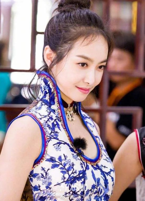 戚薇这一款长旗袍可以说的是非常的复古性感,“V”领的设计,完美展现了戚薇美丽的锁骨,中袖的剪裁,遮挡住了手臂,使得手臂只露出了一半,反而使得小臂更加美丽,长款的旗袍很好的遮住了身材,却完美地展现她傲人身形。