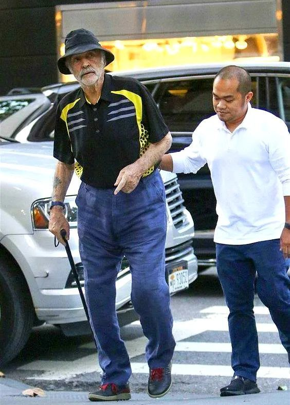 息影之后,很难再看到肖恩·康纳利的身影。2017年,他被拍到拄着拐杖,被人搀扶着行走,那一幕,还是让人有些心酸。