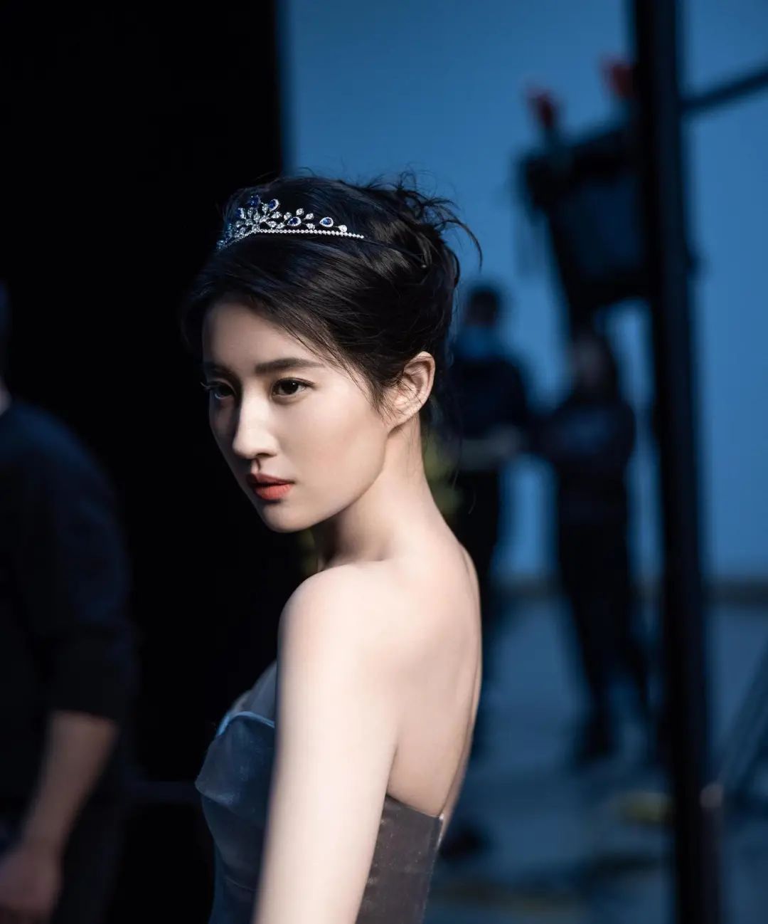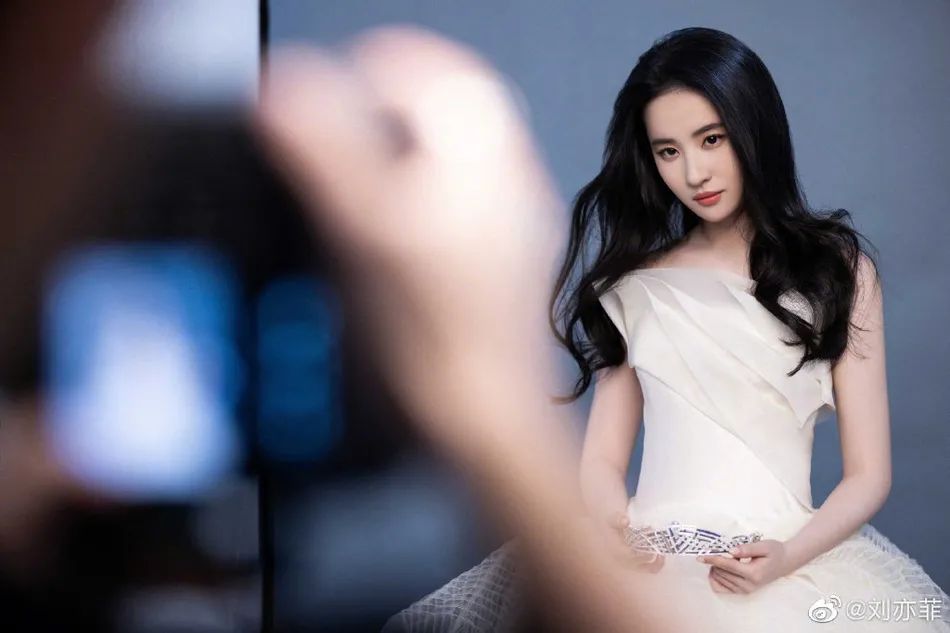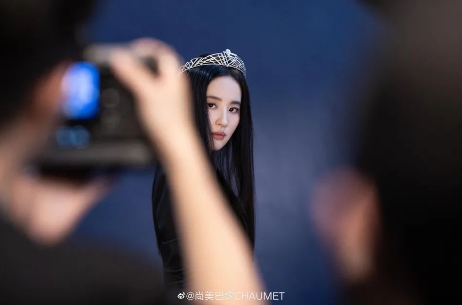 刘亦菲则带着温和的笑容,同旁边的造型师沟通拍摄事宜,这张图片虽然不是最终成图,但是一样让人惊艳。