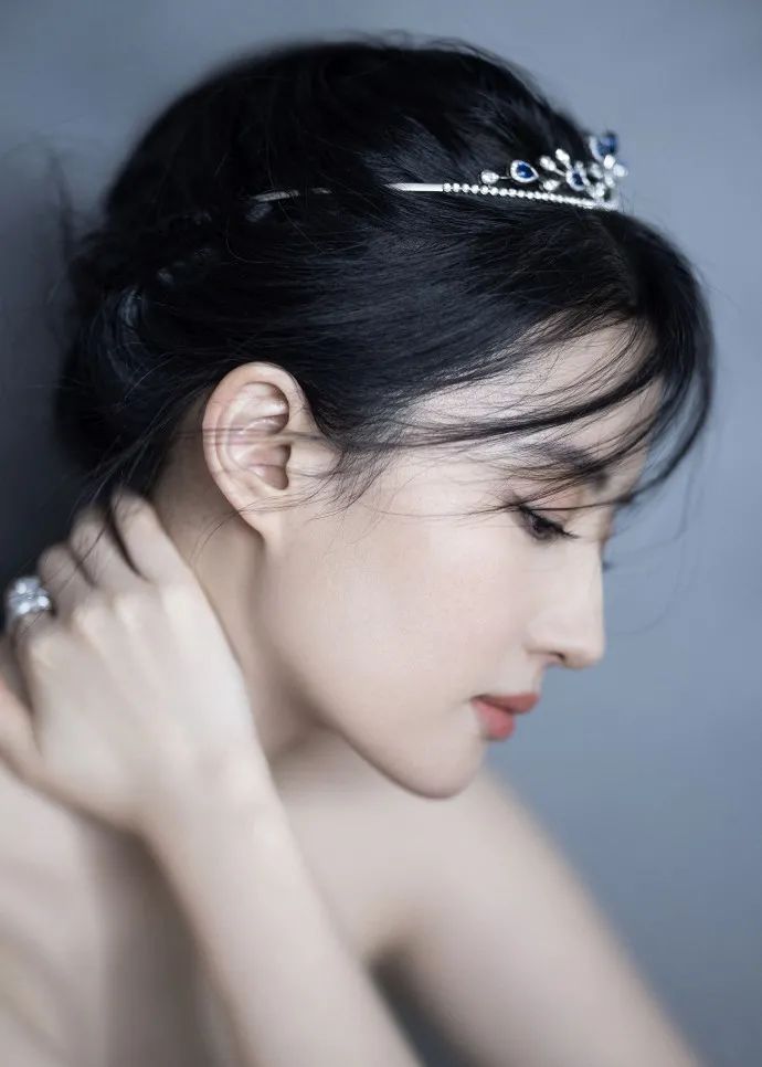 妆容也是很符合刘亦菲以往的淡妆,毕竟神仙姐姐本身颜值爆表,全身肌肤白若初雪,加上头戴皇冠手带戒指,美得让人窒息。