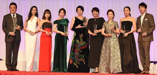 日本一代美女藤原纪香最有特色之处便是黑色礼服裙上的“彩凤””图案,艳丽的色彩在黑色的衬托下更觉夺目,轻而易举成为人群中最瞩目的存在。穿着这样华服的藤原纪香,即便是在一众小花面前也毫不逊色。